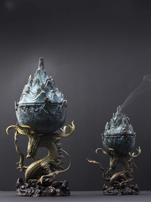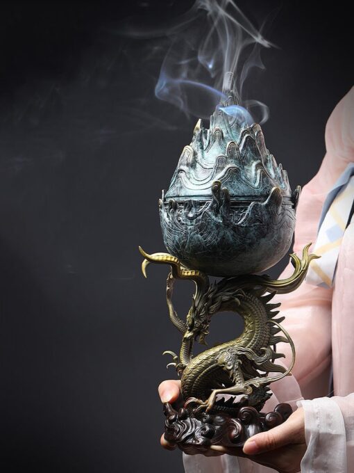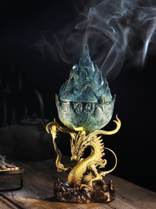 Trong phong thủy, rồng là linh vật mạnh mẽ, biểu tượng của sự giàu có và thịnh vượng. Núi non lại mang ý nghĩa của sự ổn định và bền vững. Việc kết hợp rồng và núi non trong thác khói trầm hương này giúp gia chủ tạo ra một không gian sống đầy đủ tài lộc và bình an. Thác khói trầm hương còn giúp thanh lọc không khí, mang lại sự yên tĩnh và thư giãn cho gia đình.