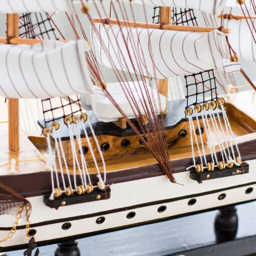 Thuyền buồm tặng tân gia, doanh nghiệp được làm từ gỗ thông cao cấp, một loại gỗ nổi tiếng với độ bền và vẻ đẹp tự nhiên. Chất liệu gỗ này không chỉ giúp sản phẩm duy trì độ bền theo thời gian mà còn giữ được vẻ đẹp tinh tế, tạo điểm nhấn ấn tượng cho không gian bày trí. Mỗi chi tiết của thuyền buồm đều được chế tác tỉ mỉ, từ các sợi dây cáp đến những cánh buồm mềm mại, tất cả đều hoàn hảo đến từng chi tiết.