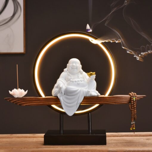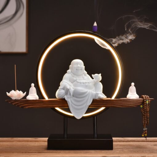 Thác khói trầm hương Phật Di Lặc bằng gốm sứ