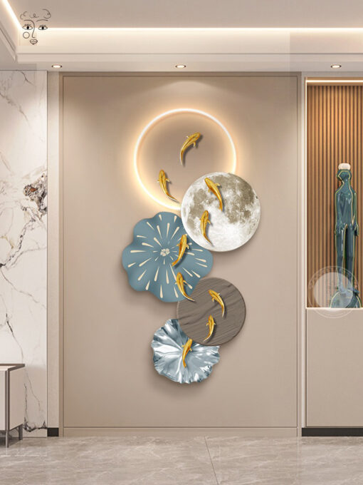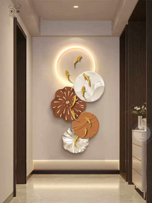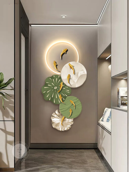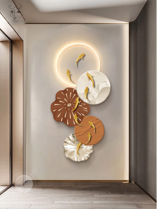 Tranh Treo Tường Cửu Ngư Quần Hội 3D Tạo Điểm Nhấn Sang Trọng Cho Phòng Khách