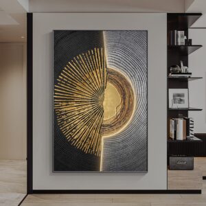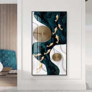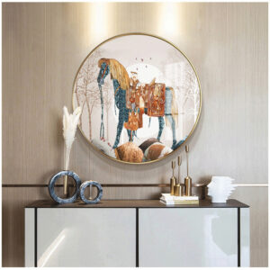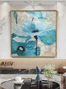 Ngoài ra, tranh còn được làm từ khung hợp kim nhôm, một chất liệu vừa chắc chắn lại vừa hiện đại, giúp bảo vệ tranh khỏi các yếu tố bên ngoài và tạo sự sang trọng, đẳng cấp cho tác phẩm. Việc sử dụng chất liệu này không chỉ giúp tranh bền đẹp mà còn tăng giá trị thẩm mỹ của không gian nơi bức tranh được treo.
