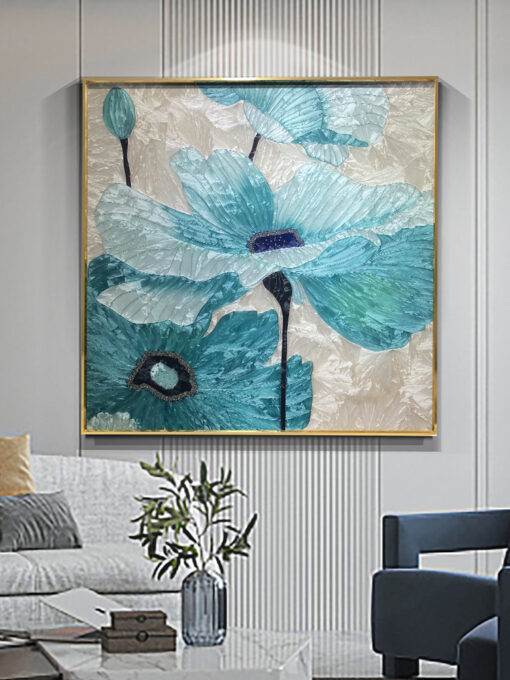 “Tranh Hoa Sen Khảm Trai Nhân Tạo” là tác phẩm nghệ thuật tinh tế với sự kết hợp hoàn hảo giữa hoa sen thanh tao và kỹ thuật khảm trai nhân tạo độc đáo. Bức tranh mang màu xanh dịu mát, tạo cảm giác bình yên và thư thái cho không gian sống. Đây là lựa chọn tuyệt vời để trang trí phòng khách, phòng làm việc hay các không gian sang trọng, vừa thể hiện phong cách tinh tế, vừa mang ý nghĩa phong thủy tốt lành, tượng trưng cho sự thuần khiết và sự thanh tịnh trong cuộc sống.