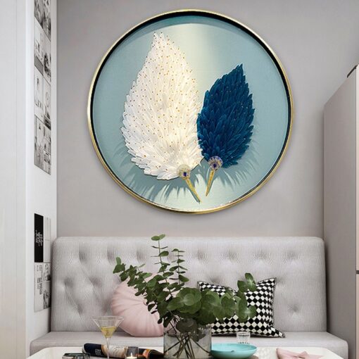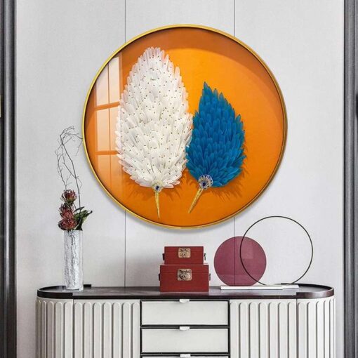 Tranh Treo Tường Hình Tròn Lông Vũ Tinh Tế Điểm Nhấn Sang Trọng Cho Phòng Khách