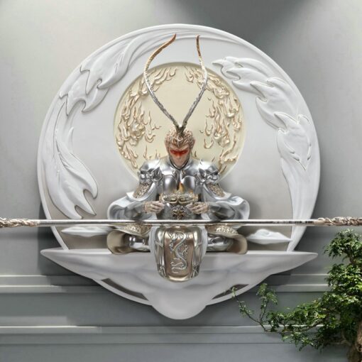 Tranh phù điêu 3D Tôn Ngộ Không là một tác phẩm nghệ thuật được làm từ chất liệu FRP và khung gỗ, với thiết kế đầy tính biểu tượng và nghệ thuật. Tôn Ngộ Không trong tư thế ngồi thiền, tay cầm gậy, tượng trưng cho sức mạnh, trí tuệ và sự uy nghiêm. Mặt sau của Tôn Ngộ Không là vầng hào quang tròn lớn, thêm phần nổi bật cho hình ảnh tượng trưng này. Các chi tiết khác như trang phục, vũ khí, và các chi tiết nhỏ khác được chế tác tỉ mỉ, mang đến một sản phẩm hoàn hảo về mặt thẩm mỹ.