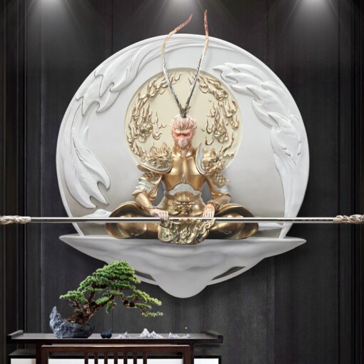 Tranh phù điêu 3D Tôn Ngộ Không có thể treo trên sofa hay treo trên kệ decor hành lang phòng khách.