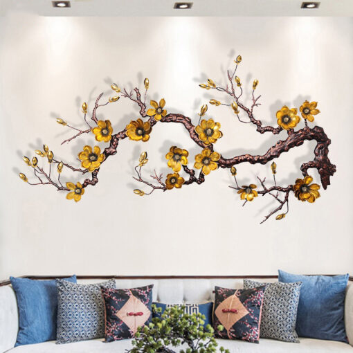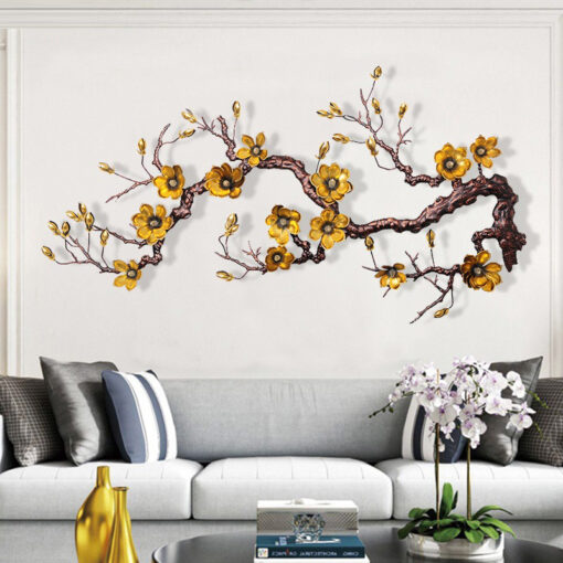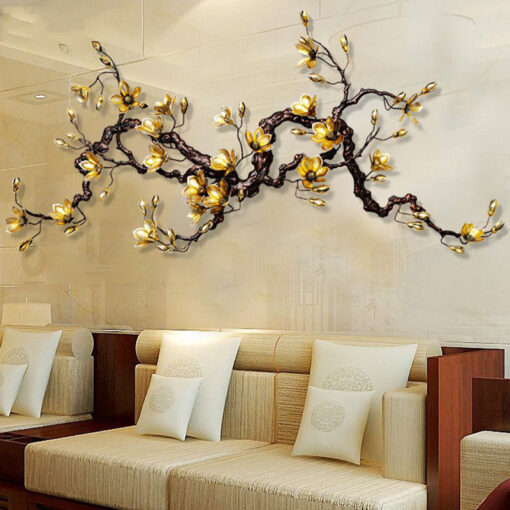 Cách Bài Trí Tranh Sắt Treo Tường Hoa Mộc Lan Vàng Phú Quý