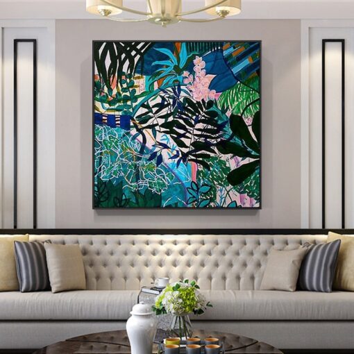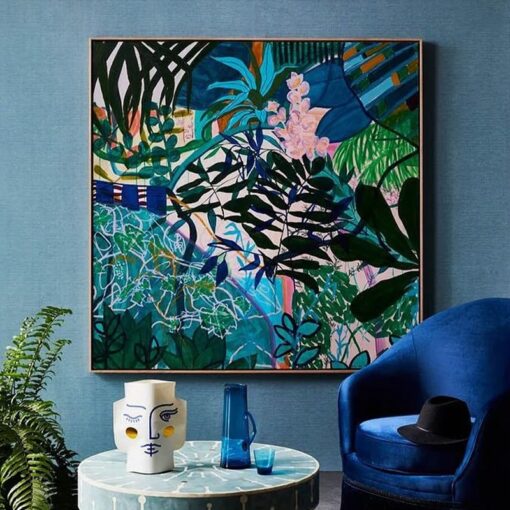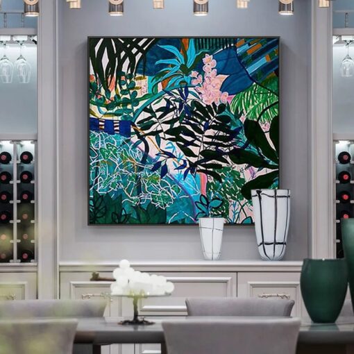 Tranh Sơn Dầu Vẽ Tay Sắc Xanh Nhiệt Đới