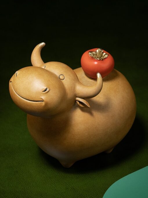 Sự kết hợp giữa hình tượng trâu vàng và quả hồng đỏ mang lại sự cân bằng tuyệt đối trong phong thủy, tạo nên một vật phẩm không chỉ có giá trị nghệ thuật mà còn mang ý nghĩa bảo vệ và phát triển toàn diện.