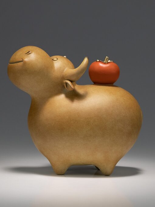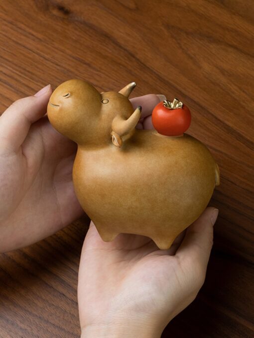 Tượng trâu cõng quả hồng có kiểu dáng dễ thương, nhỏ gọn