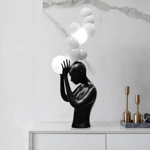 Không chỉ là vật dụng trang trí, tượng còn mang ý nghĩa phong thủy tích cực, tượng trưng cho sự khai phá trí tuệ và sáng tạo. Hình ảnh người và các quả cầu lơ lửng được xem như biểu tượng của dòng chảy năng lượng, giúp mang lại sự cân bằng và hài hòa cho không gian sống. Điều này có thể giúp cải thiện năng lượng trong phòng, tạo nên một môi trường sống tích cực và hài hòa.
