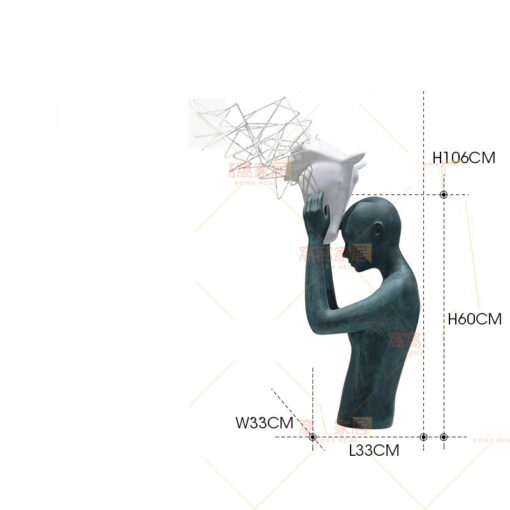 Tượng nghệ thuật với kích thước D29cm x R25cm x C79cm được thiết kế theo phong cách hiện đại, đầy sáng tạo và tinh tế. Điểm nhấn của sản phẩm là sự kết hợp giữa hình ảnh người với các chi tiết hình cầu lơ lửng, tạo cảm giác như một dòng ý tưởng đang được khai phá. Thiết kế này vừa mang tính nghệ thuật cao vừa kích thích sự sáng tạo và trí tưởng tượng, làm cho sản phẩm trở thành một điểm nhấn trong không gian.