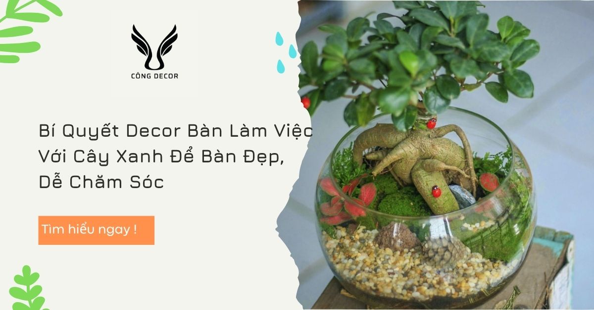 Hãy chọn loại cây phù hợp với bản thân, phối hợp decor cá tính, và đừng quên chăm sóc cây đều đặn để bàn làm việc luôn xanh tươi, rực rỡ nguồn năng lượng tích cực! Nếu bạn cần tư vấn chọn cây xanh, chậu decor đẹp cho bàn làm việc hoặc giải pháp tiểu cảnh mini, hãy liên hệ Công Decor để nhận được sự hỗ trợ tận tình từ các chuyên gia decor và phong thủy hiện đại.