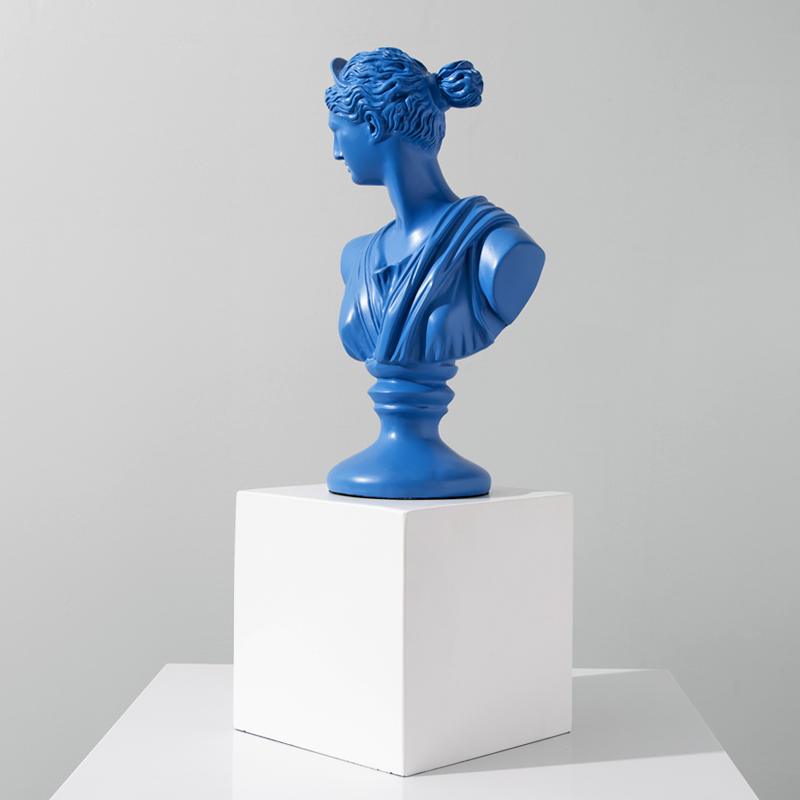 Điểm đặc biệt của tượng bán thân này chính là việc áp dụng các màu sắc tươi sáng như vàng, xanh da trời, và trắng, thay vì những tông màu đậm như những bức tượng cổ điển truyền thống. Điều này giúp cho tượng mang lại cảm giác mới mẻ, hiện đại và dễ dàng hòa hợp vào mọi không gian, dù là không gian trang trọng hay nhẹ nhàng. Không chỉ là một món đồ trang trí thông thường, tượng bán thân này còn mang một giá trị nghệ thuật cao, tạo ra điểm nhấn độc đáo cho không gian sống.