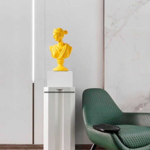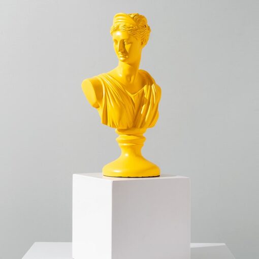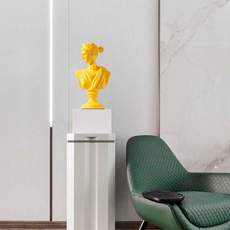 Tượng bán thân Hy Lạp màu sắc tươi mới là sự kết hợp tinh tế giữa nghệ thuật cổ điển và phong cách hiện đại. Với kiểu dáng bán thân kinh điển, tượng mang nét đẹp sang trọng, thanh lịch của nghệ thuật Hy Lạp cổ đại, nhưng lại được phủ lớp sơn màu tươi sáng, nổi bật như vàng, xanh dương, hoặc trắng ngà, tạo nên sức hút mãnh liệt cho không gian sống và làm việc. Sản phẩm này không chỉ là điểm nhấn trang trí, mà còn thể hiện gu thẩm mỹ tinh tế, giúp không gian trở nên trẻ trung, sinh động và đậm chất nghệ thuật. Đây là lựa chọn lý tưởng cho những ai yêu thích sự pha trộn giữa truyền thống và hiện đại, đem lại cảm hứng sáng tạo và tinh thần phóng khoáng cho không gian nội thất.