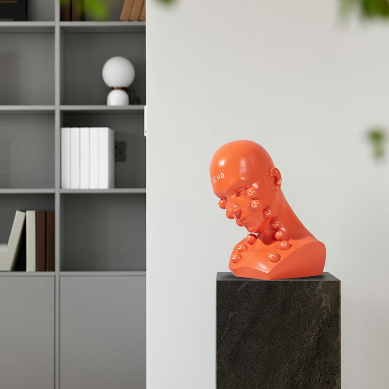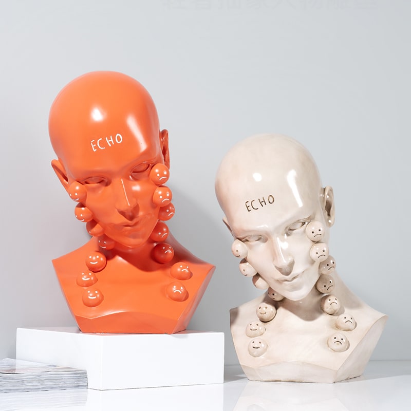 Bộ tượng bán thân nghệ thuật phong cách Echo thực sự là một tác phẩm độc đáo và ấn tượng. Với thiết kế hiện đại, mỗi bức tượng thể hiện biểu cảm khuôn mặt sống động kết hợp cùng những chi tiết viên bi mang hình mặt cười và mặt buồn, tạo nên sự đối lập và chiều sâu cảm xúc đặc biệt. Màu sắc cam nổi bật và trắng tinh tế giúp bộ tượng dễ dàng hòa hợp với nhiều không gian nội thất khác nhau, từ hiện đại đến cá tính. Đây chắc chắn là món đồ decor lý tưởng cho những ai yêu thích nghệ thuật đương đại và muốn tạo điểm nhấn riêng biệt cho không gian sống hoặc làm việc.