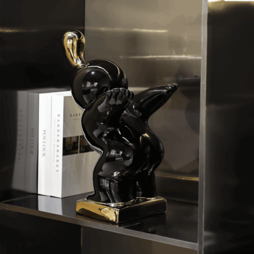 Tượng Bé Phiêu Lưu Trên Không là một tác phẩm điêu khắc bằng gốm sứ cao cấp, mang đậm nét hiện đại và đầy cảm hứng. Thiết kế tượng mô phỏng hình ảnh một chú bé trong trạng thái bay bổng, khám phá không gian xung quanh với tinh thần phiêu lưu không ngừng nghỉ. Sự kết hợp hài hòa giữa đường nét mềm mại, uốn lượn tinh tế cùng gam màu đen bóng điểm vàng đã tạo nên sức hút đặc biệt cho sản phẩm.
