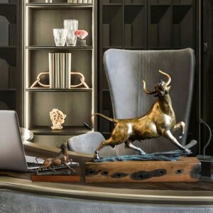 Với những không gian rộng lớn như phòng khách, đại sảnh công ty hay các khu vực trưng bày nghệ thuật, tượng bò tót phố Wall bằng đồng lớn sẽ là sự lựa chọn hoàn hảo. Với kích thước lớn, tượng không chỉ là điểm nhấn trong không gian mà còn mang lại sức mạnh và sự thịnh vượng cho gia chủ. Các chi tiết trên tượng bò tót bằng đồng lớn được chế tác rất tinh xảo, tạo nên vẻ đẹp vừa mạnh mẽ, vừa thanh thoát cho không gian sống.