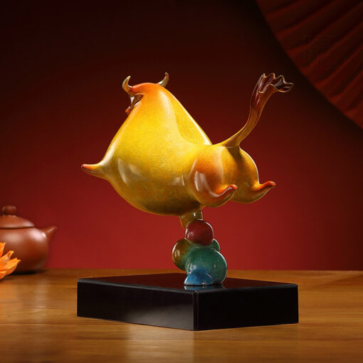 “Tượng Bò Tót Phúc Lộc Vẹn Toàn” là tác phẩm nghệ thuật tinh tế, biểu tượng cho sức mạnh và sự thịnh vượng. Thiết kế độc đáo với thân hình tròn trịa, dáng đứng trên những viên đá nhiều màu sắc, tượng mang đến cảm giác cân bằng và vững chắc. Màu sắc tươi sáng, pha trộn hài hòa giữa vàng, đỏ và xanh, làm nổi bật sự sang trọng và quyền lực. Tượng không chỉ là món đồ trang trí ấn tượng mà còn mang ý nghĩa phong thủy, giúp gia chủ đón nhận vận khí tốt, tăng cường tài lộc và bình an trong cuộc sống. Đây là lựa chọn hoàn hảo cho không gian làm việc hay phòng khách hiện đại.
