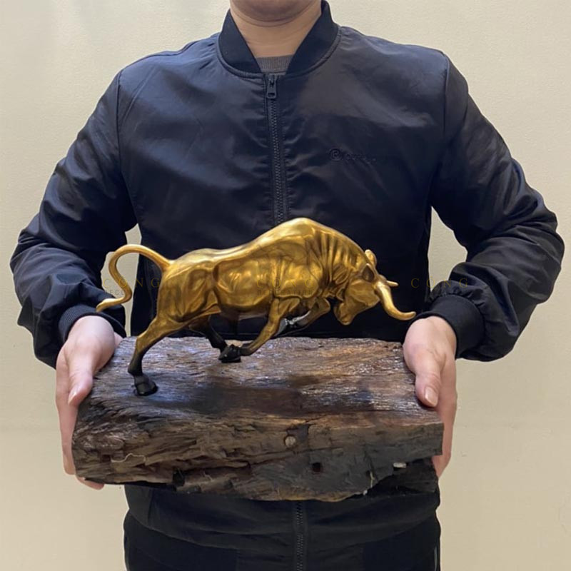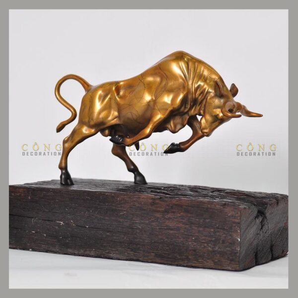 Tượng Bò Tót Sức Mạnh Thịnh Vượng là biểu tượng phong thủy mạnh mẽ, thể hiện ý chí kiên cường và năng lượng dồi dào. Với dáng đứng uy nghi, bước chân vững chãi trên nền gỗ mộc mạc, tượng mang ý nghĩa mang lại sức mạnh, sự bền bỉ và thịnh vượng cho gia chủ. Màu đồng vàng sang trọng làm nổi bật đường nét tinh xảo, tạo cảm giác quyền lực và năng lượng tích cực. Đây là món đồ trang trí lý tưởng cho phòng khách, văn phòng hoặc không gian làm việc, giúp kích hoạt vận khí, thu hút tài lộc và thành công bền lâu.