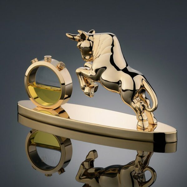 Tượng Bò Tót Thịnh Vượng Kèm Đồng Hồ Vàng – Điểm Nhấn Sang Trọng Trên Taplo Ô Tô