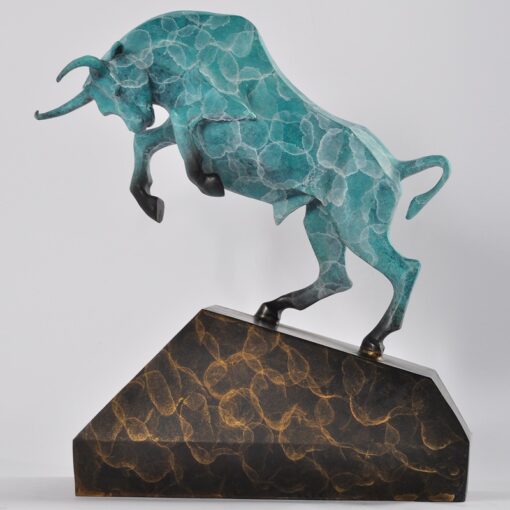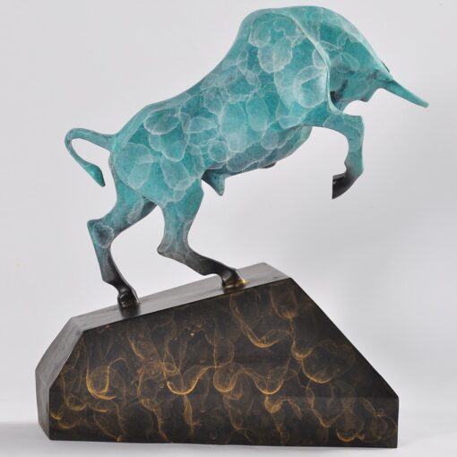 Tượng Bò Tót Uy Dũng Chinh Phục màu xanh