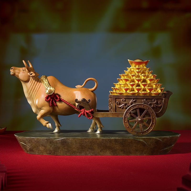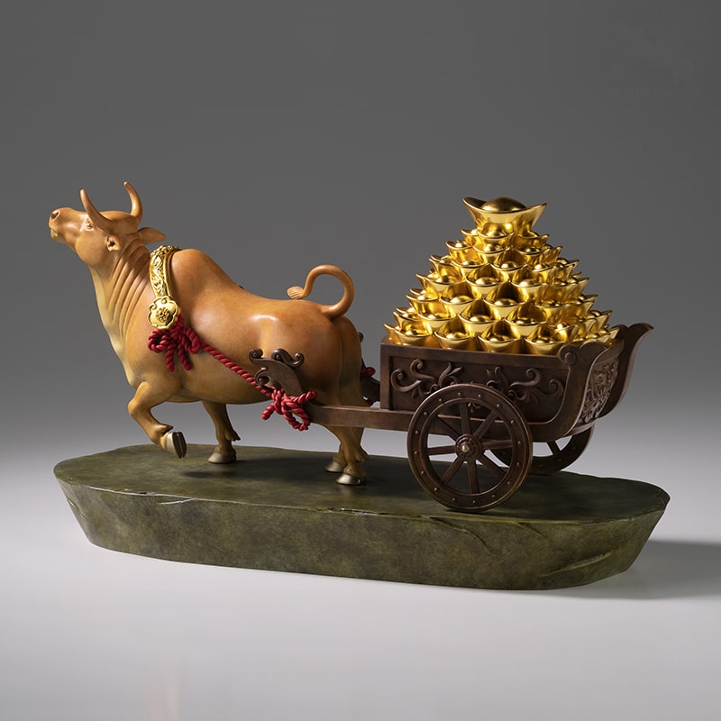 Tượng Bò Tót Vượng Tài Kéo Xe