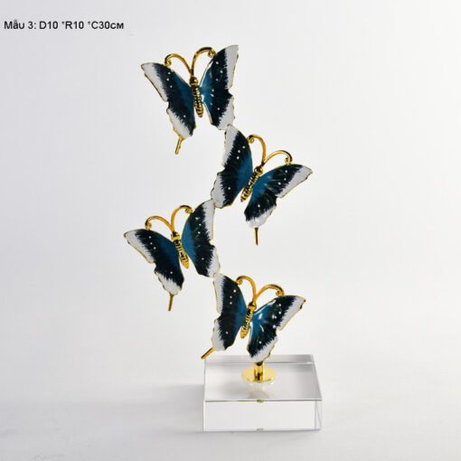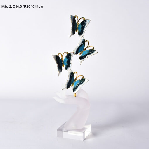 - Cánh bướm pha lê rực rỡ: Cánh bướm được làm từ chất liệu pha lê trong suốt hoặc màu sắc lung linh, phản chiếu ánh sáng đẹp mắt. Đây là yếu tố chính làm tăng sự nổi bật và sang trọng của tượng trong không gian.