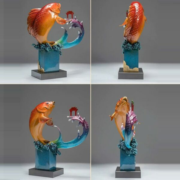 Tượng Cá Chép Vượt Vũ Môn Hóa Rồng mang ý nghĩa vượt qua thử thách, bứt phá giới hạn để đạt được thành công lớn lao. Hình ảnh cá chép vượt vũ môn tượng trưng cho sự kiên trì, ý chí mạnh mẽ và khát vọng thăng tiến. Khi hóa rồng, tượng trở thành biểu tượng của quyền uy, may mắn và tài lộc, mang đến sự thịnh vượng, hòa hợp trong cuộc sống. Đây là vật phẩm phong thủy lý tưởng cho sự nghiệp và gia đình.