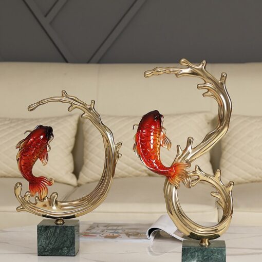 Tượng cá Koi bằng đồng nguyên chất trang trí phòng khách sang trọng