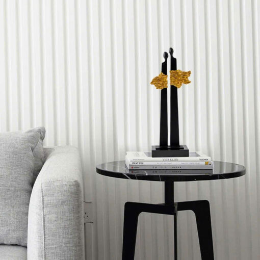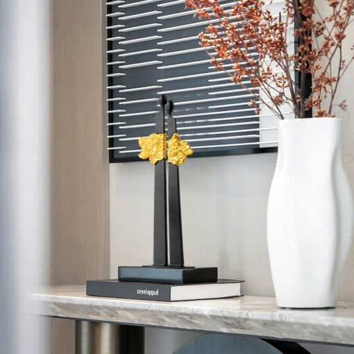 Tượng Cặp Đôi Nghệ Thuật Trừu Tượng mang vẻ đẹp tinh tế và sâu sắc qua hình ảnh hai con người đứng sát bên nhau, biểu tượng cho sự gắn kết và đồng hành trong cuộc sống. Thiết kế trừu tượng với đường nét tối giản, kết hợp sắc đen huyền bí và điểm nhấn vàng rực rỡ tạo nên sự hài hòa về mặt thị giác và cảm xúc. Tượng phù hợp làm điểm nhấn trang trí trong không gian phòng khách, phòng làm việc hoặc phòng ngủ, mang lại cảm giác ấm áp, gần gũi và phong cách hiện đại cho căn phòng. Đây là lựa chọn lý tưởng cho những ai yêu thích nghệ thuật và muốn thể hiện giá trị tình cảm qua không gian sống.