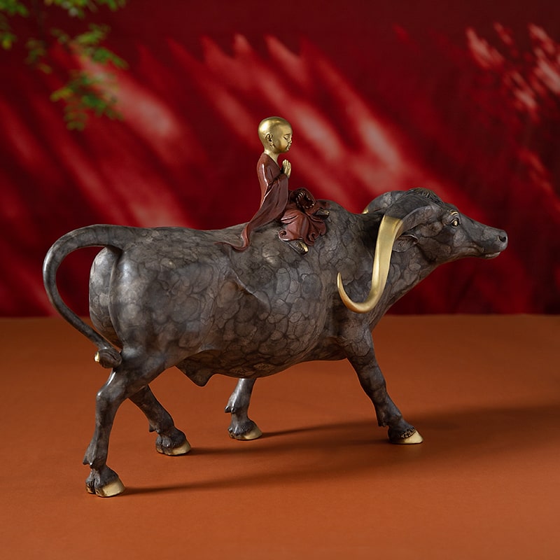 Cậu bé cưỡi bò cũng có thể biểu thị sự kết hợp giữa sức mạnh và sự thông thái, giúp gia chủ đạt được sự thịnh vượng mà không cần phải đối mặt với những khó khăn quá lớn. Đây là sự tượng trưng cho việc tìm kiếm sự cân bằng trong cuộc sống – giữa công việc và gia đình, giữa sự nghiệp và hạnh phúc cá nhân.