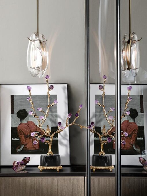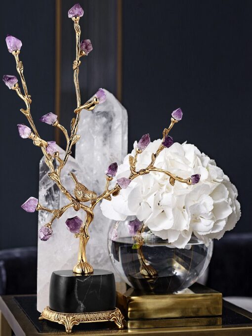 Đá quý được gắn trên cây không chỉ mang lại vẻ đẹp mà còn có ý nghĩa phong thủy mạnh mẽ. Tùy thuộc vào loại đá quý được sử dụng, tượng cây có thể mang lại những năng lượng tích cực khác nhau: đá thạch anh tím giúp tăng cường trí tuệ và sự tập trung, đá đỏ biểu thị sự đam mê và sức mạnh, trong khi đá xanh mang lại cảm giác bình an, tĩnh tại.