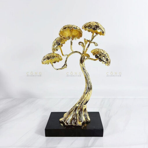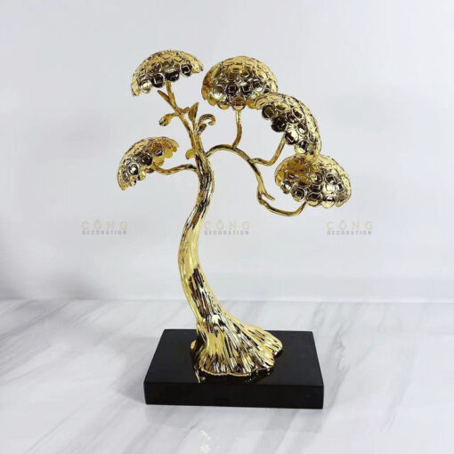 Cây tùng từ lâu đã được xem là một trong những loài cây cao quý và mang ý nghĩa phong thủy sâu sắc. Trong tự nhiên, cây tùng thường sống lâu năm, chịu được khắc nghiệt của thời tiết. Hình tượng cây tùng vì thế gắn liền với sự trường thọ, sức khỏe bền bỉ và ý chí kiên cường. Khi kết hợp với chất liệu hoàng kim, sản phẩm này còn tôn lên sự quý phái, vững vàng, mang lại năng lượng tích cực cho không gian.