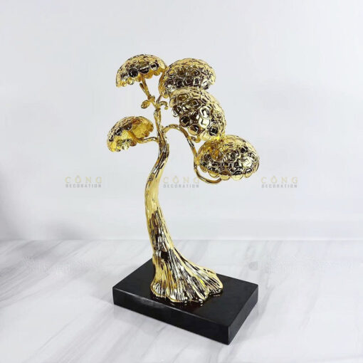 Mô hình cây tùng la hán mạ vàng sang trọng.