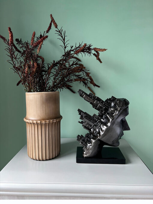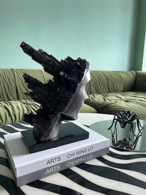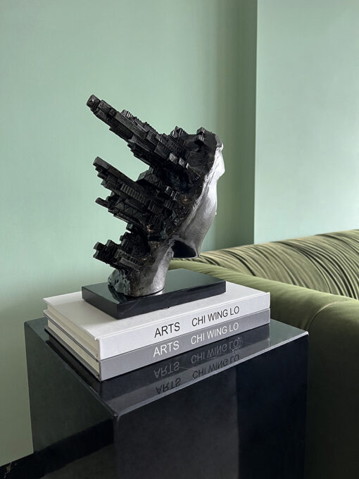 Tượng Chân Dung Kiến Trúc thuộc dòng nghệ thuật trừu tượng, phù hợp với không gian sống hiện đại. Các khối kiến trúc nhỏ bé trên bức tượng như những câu chuyện đang chờ được kể, gợi mở trí tưởng tượng và cảm giác tò mò của người nhìn.