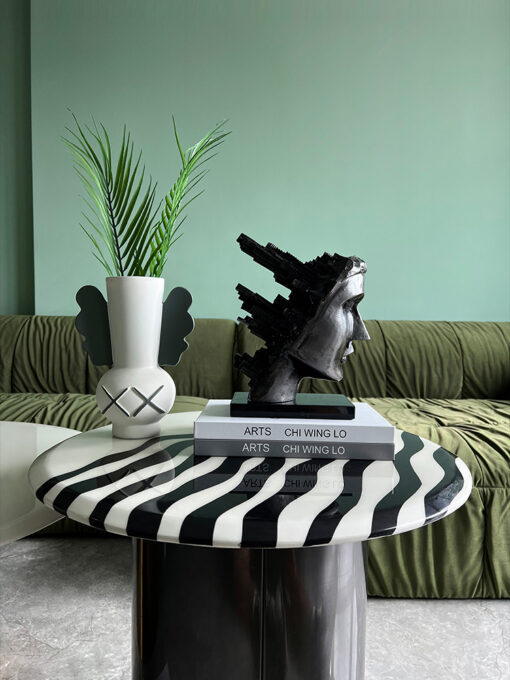 Đặt tượng trên bàn trà hoặc kệ trang trí ở phòng khách sẽ tạo nên một không gian đậm chất nghệ thuật. Ánh sáng tự nhiên hoặc ánh đèn từ hệ thống chiếu sáng sẽ làm nổi bật bức tượng, khiến căn phòng trở nên sang trọng và ấn tượng hơn.