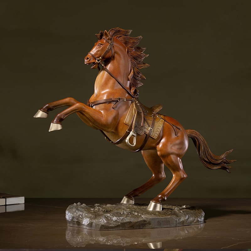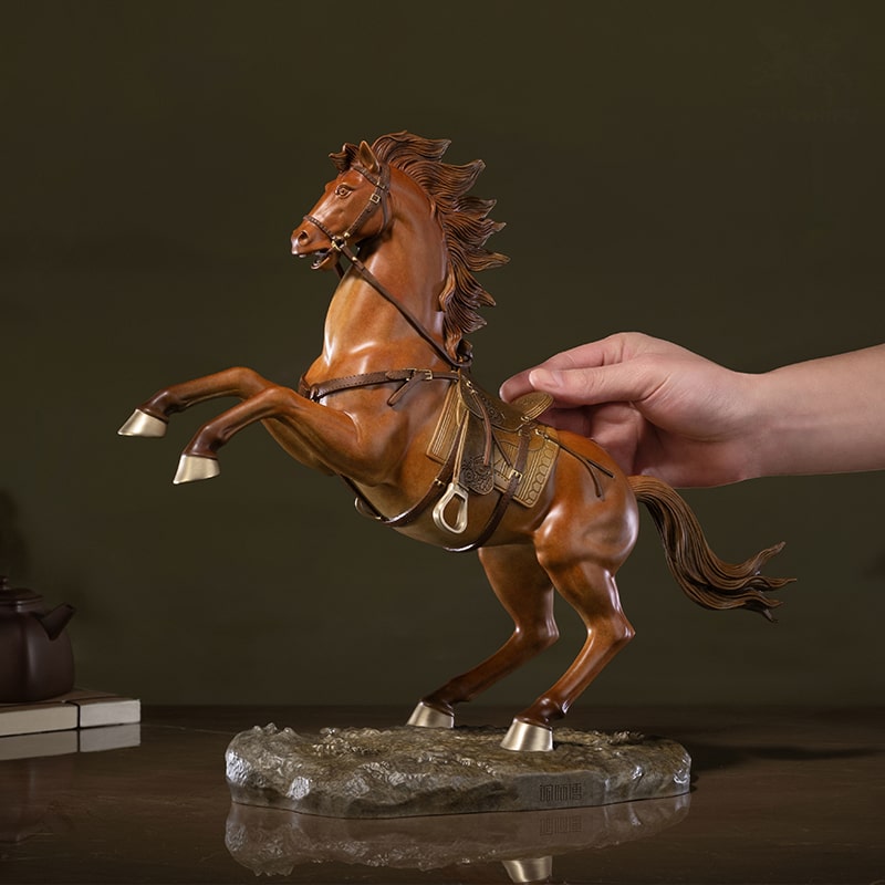 Tượng chiến mã là biểu tượng của sự nhanh nhẹn, quyết đoán và sức mạnh tinh thần. Việc trưng bày tượng ngựa đúng cách giúp gia chủ có thêm sức mạnh tinh thần, sự tự tin và tinh thần vượt khó, mở rộng quan hệ và đạt được những bước tiến vượt bậc trong sự nghiệp.