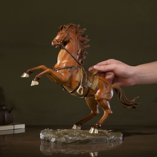 - Thiết kế thủ công tinh xảo: Mỗi chi tiết đều được chạm khắc cẩn thận, thể hiện sự uy nghiêm, mạnh mẽ và khí thế đặc trưng của chiến mã.