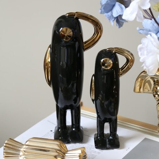Điểm nhấn nổi bật của tượng chính là sự kết hợp giữa gam màu đen chủ đạo và các chi tiết vàng sáng bóng, tạo nên vẻ đẹp sang trọng, hiện đại. Đây là một thiết kế độc đáo, mang đến cho không gian sống không chỉ vẻ đẹp thẩm mỹ mà còn những ý nghĩa phong thủy vô cùng tích cực. Bất kể là trong phòng khách, phòng ngủ hay phòng làm việc, tượng chim cánh cụt đều tạo ra sự nổi bật và là một điểm nhấn ấn tượng trong không gian sống của gia chủ.