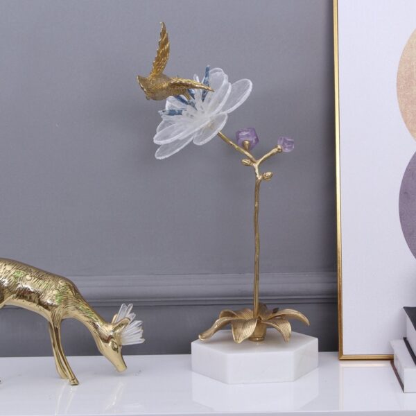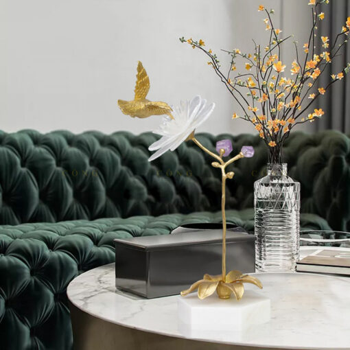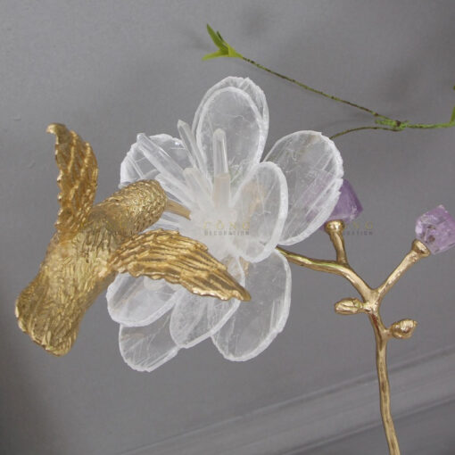 Tượng Chim Ruồi Vàng Bên Hoa Ngọc Thanh Tao thích hợp trang trí phòng khách
