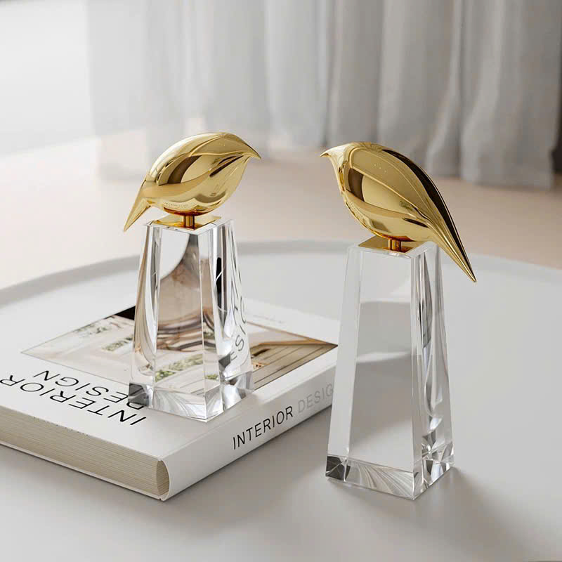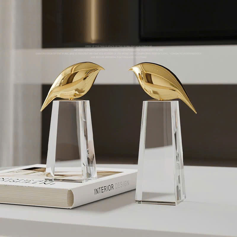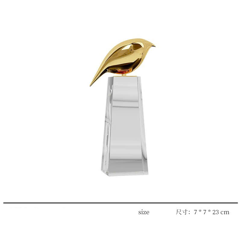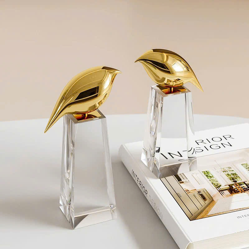 Tượng Chim Vàng Độc Đáo được chế tác tỉ mỉ, với sự kết hợp giữa pha lê trong suốt và kim loại mạ vàng, mang lại sự sang trọng và giá trị thẩm mỹ cho không gian. Bộ sản phẩm bao gồm hai kích thước, phù hợp với từng không gian sống khác nhau: