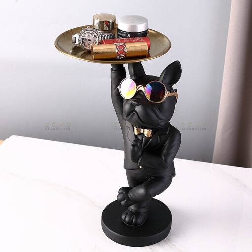 Không chỉ là món đồ trang trí, tượng chó Bulldog còn mang đến tính thực tiễn cao. Bạn có thể sử dụng khay để đặt các vật dụng cá nhân như: