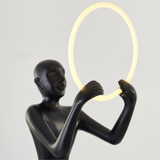 Tượng Cô Gái Ngồi Nâng Vòng Ánh Sáng mang phong cách trừu tượng, sang trọng và hiện đại