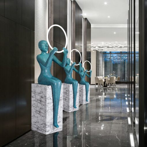 Không gian sảnh cần sự sang trọng và đẳng cấp, Tượng Cô Gái Ngồi Nâng Vòng Ánh Sáng là lựa chọn hoàn hảo để tăng tính thẩm mỹ.
