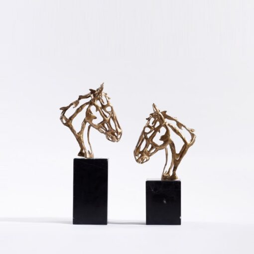 Tượng Đầu Ngựa Khung Kim Loại Nghệ Thuật Cách Tân thể hiện sự sáng tạo độc đáo qua thiết kế khung kim loại đan xen tinh tế, tạo hình dáng đầu ngựa phong cách hiện đại, cách điệu. Màu sắc vàng đồng trên nền đế đá đen sang trọng làm nổi bật nét cá tính và sức sống của tác phẩm. Đây là món decor lý tưởng cho không gian phòng khách, phòng làm việc hoặc phòng trưng bày nghệ thuật, mang lại cảm giác vừa mạnh mẽ, vừa tinh tế, thể hiện sự đẳng cấp và gu thẩm mỹ tinh anh của gia chủ.