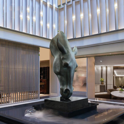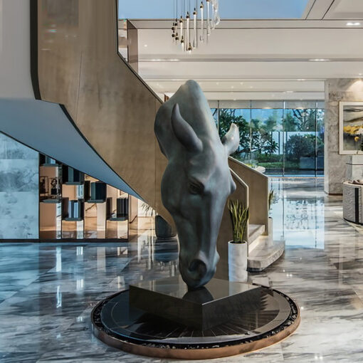 Tượng Đầu Ngựa Uy Nghiêm decor sảnh khách sạn sang trọng.