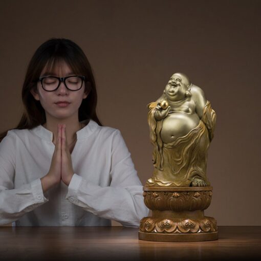 Việc bài trí tượng Di Lặc An Nhiên – Phúc Lạc Trên Đài Sen Vàng không chỉ mang ý nghĩa trang trí mà còn giúp kích hoạt vận khí, thu hút tài lộc và mang lại bình an cho gia đình hoặc doanh nghiệp.