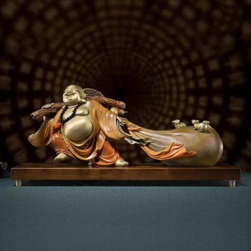 Hình ảnh Phật Di Lặc gánh túi lộc biểu trưng cho tài sản, sự phú quý và giàu sang. Theo phong thủy, việc đặt tượng trong nhà hoặc văn phòng giúp gia chủ thu hút vận may, kích hoạt năng lượng tài lộc, đồng thời mang đến sự an khang thịnh vượng cho cả gia đình.