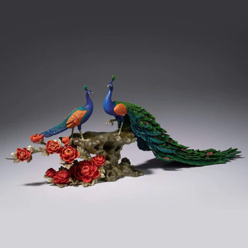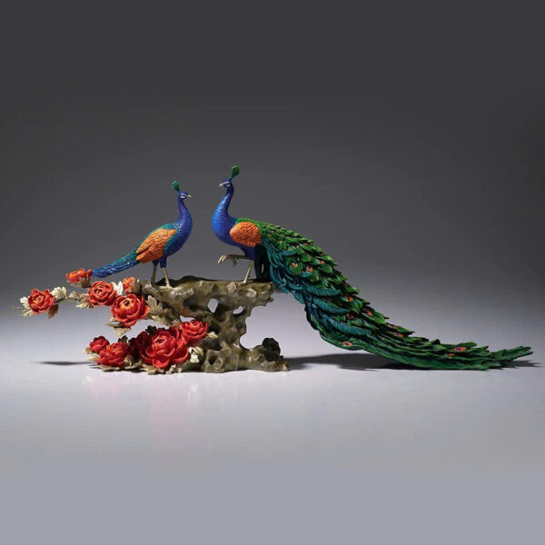 Tượng Đôi Chim Công Đứng Cành Hồng Kiêu Sa – Biểu Tượng Của Nghệ Thuật và Phong Thủy