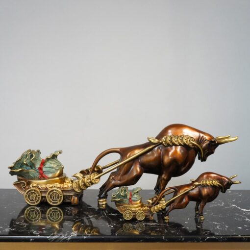 Tượng Đồng Bò Tót Kéo Xe Phúc Lộc